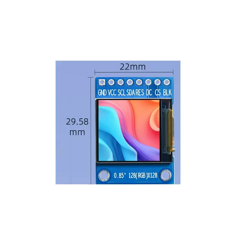 ماژول ۰.۸۵ اینچی با وضوح ۱۲۸x128 پیکسل، رابط SPI و کنترلر GC9107 برای پروژههای الکترونیکی.