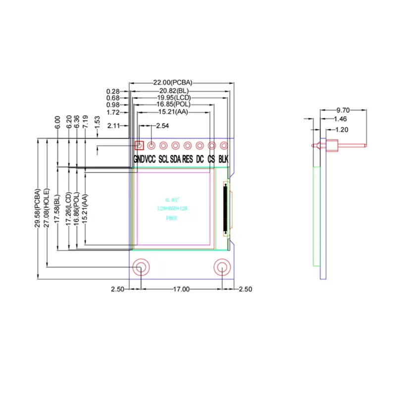 Module 0.85-inch TFT LCD display 128x128 resolution HD IPS GC9107